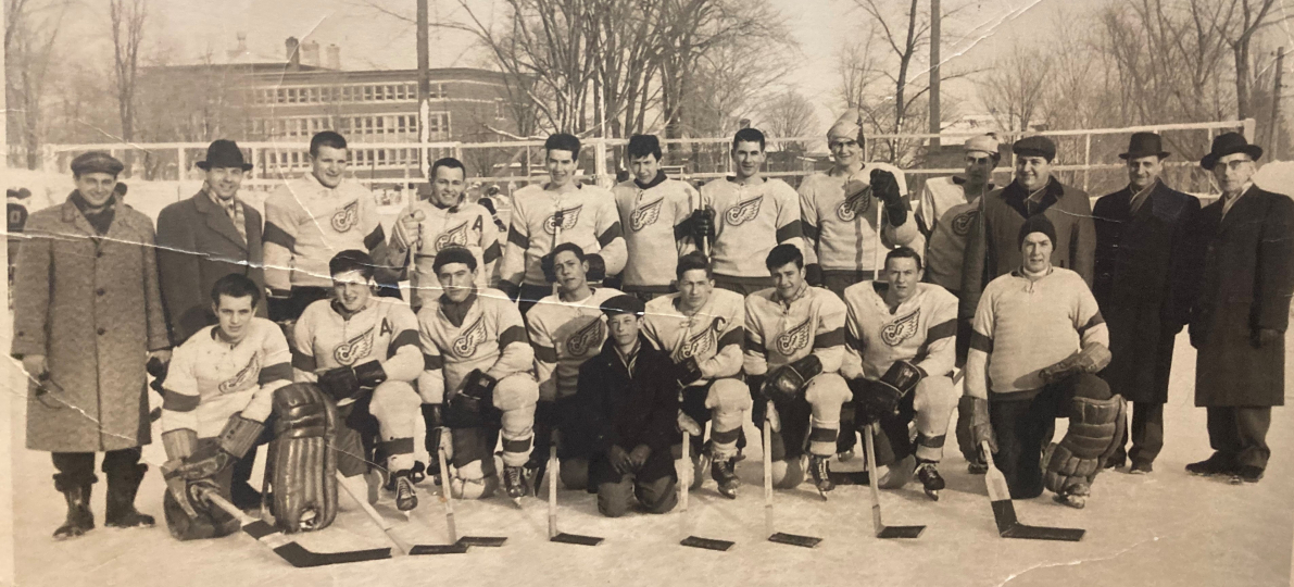 L’équipe de hockey de Beauport en 1956. De gauche à droite, à l’avant, Lucien Vallières, Denis Giroux, Claude Garon, Jacques Daigle, Yvon Fradette, René Ouellet, Gilles Ste-Marie, Michel Lortie et Guy Lortie. Debout, Gerry Duplain, Paul « Tison » Bédard, Paul- Emile Vallières, Roger Roy, André Bédard, Roger Giroux, Jean-Claude Bédard, Camille Parent, Denis Paradis (rang St-Joseph), Daniel Lortie, Héliodore Bédard, et Monseigneur Ernest Lemieux, curé de Beauport. (Photo : Ernest Rainville).