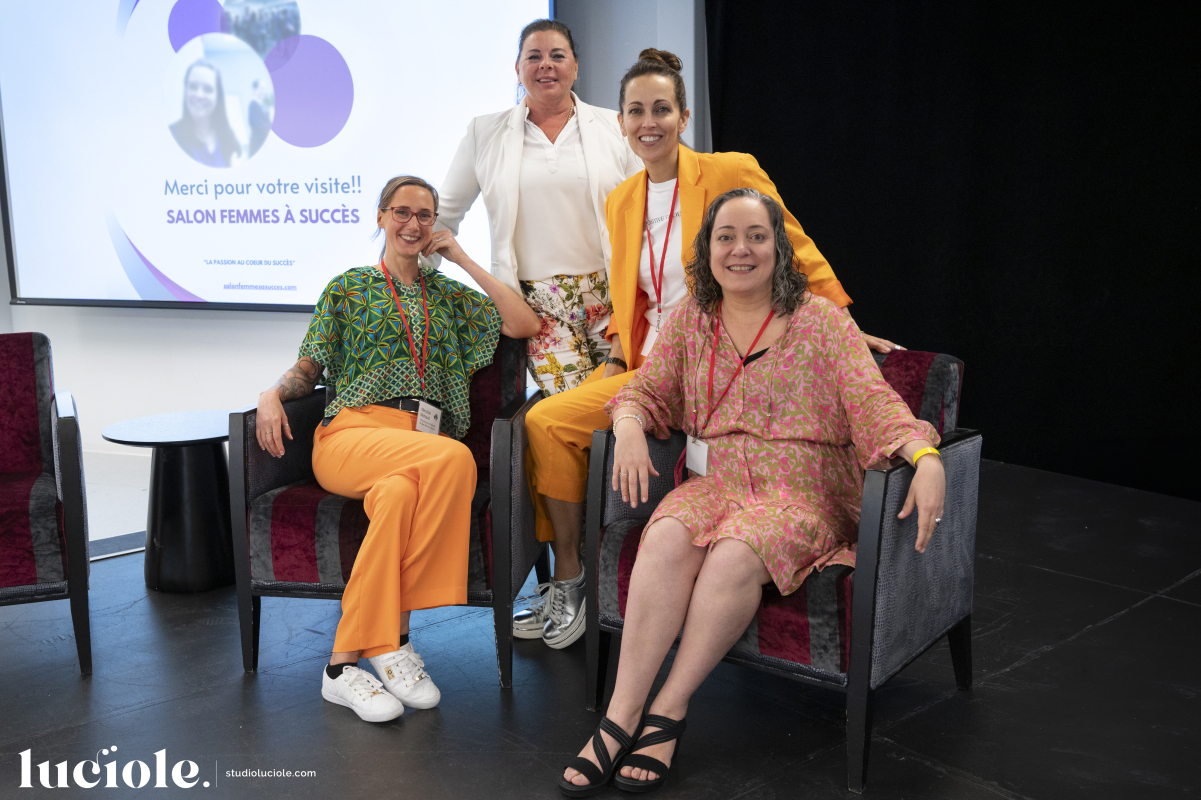 Sur la photo, de gauche à droite, Maryline Michaud, directrice générale du Salon Femmes à Succès, copropriétaire de Les Audacieuses offrant des services d’aménagement intérieur, décoration saisonnière et événementielle, Julie Bernier, propriétaire et éditrice du mensuel Ici L’Info, Mélissa Cauchon, de L’Ange-Gardien, propriétaire de Mademoiselle Fizz Stylisme aux Galeries de la Capitale et Charlotte Habegger co-fondatrice et présidente du salon, connectrice et multi-entrepreneure. (Photo : gracieuseté Studio Luciole)